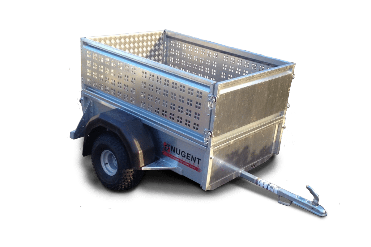 ATV-släpvagnarna är lätta så att de lätt kan manövreras för hand och deras kompakta storlek gör att de enkelt kan placeras. Tillval finns tillgängliga som snabbt gör ATV-trailern till en mycket anpassningsbar trailer med flera användningsområden runt gården. Liten i storlek men stor i kapacitet, Nugent ATV-släpvagnen finns i två storlekar som erbjuder utmärkt styrka till viktförhållande med en maximal bruttovikt på 360 kg.